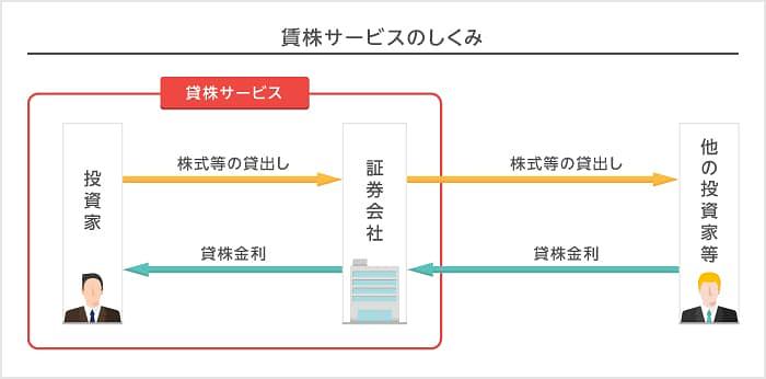 証券会社各社が提供するいわゆる貸株サービスとは、投資家が、保有している株券等を証券会社に貸し出すことで、証券会社からこれに見合う貸株金利を受け取ることができるサービスです。