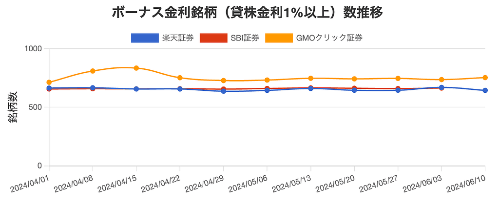 ボーナス金利銘柄(貸株金利1%以上)数推移