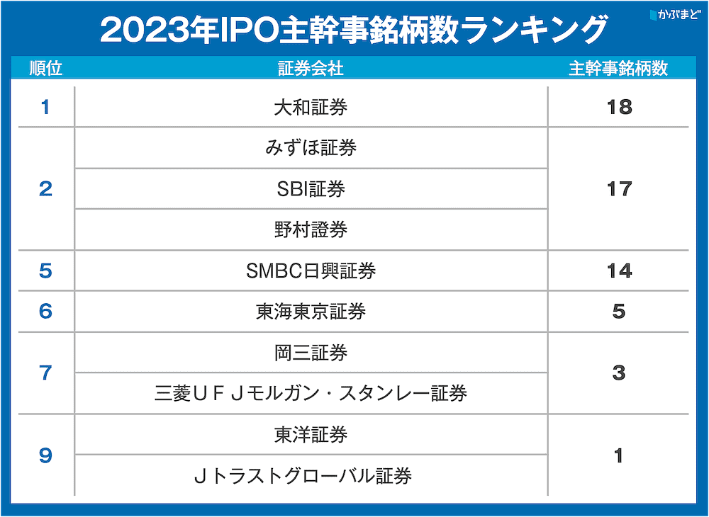 2023年IPO主幹事ランキング 引用: https://kabumado.jp/ipo_202402/